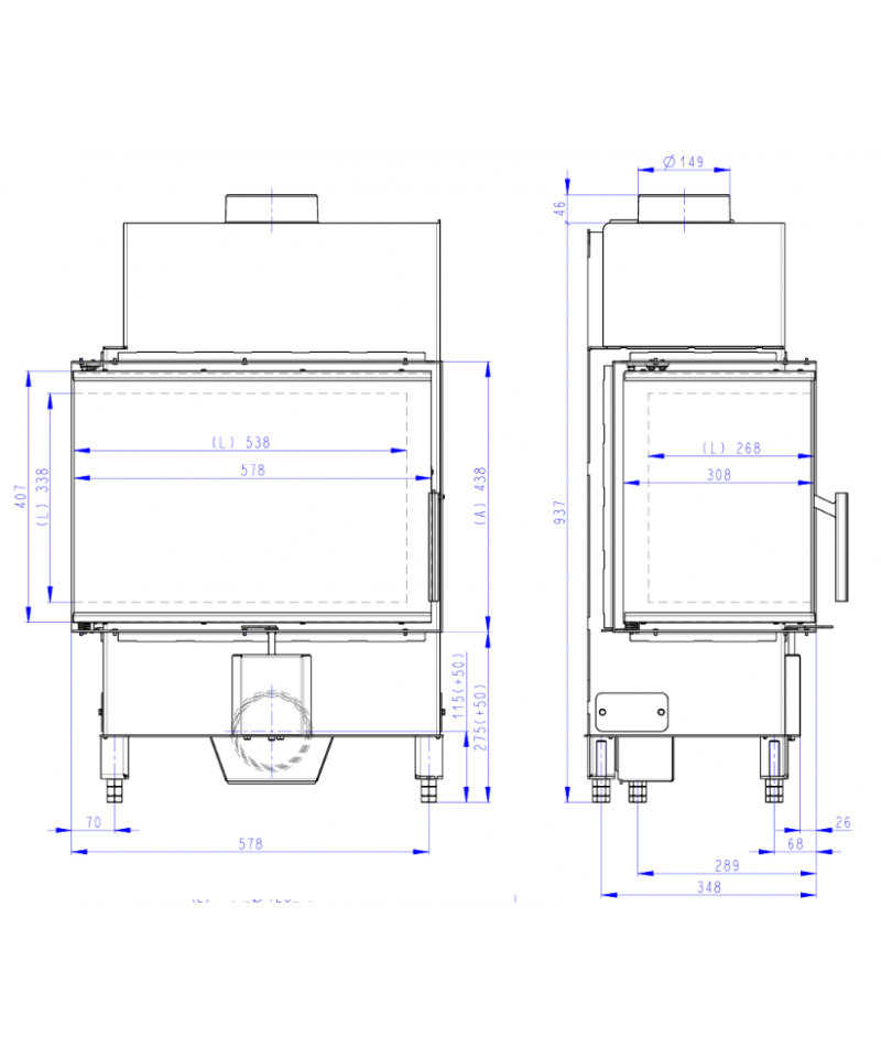 • rohová krbová vložka Romotop HEAT R/L 2g S 60.44.33.23 je určená pre konvekčnú a akumulačnú prevádzku za použitia odvetrávacej mriežky