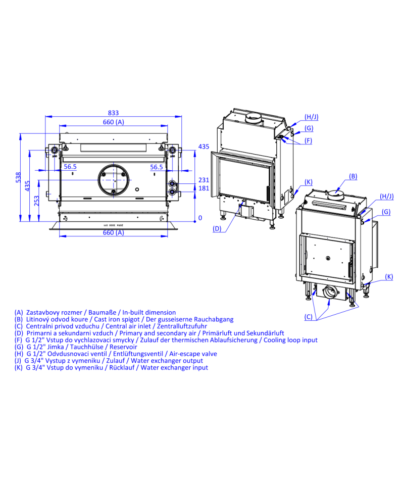 Krbové vložky DYNAMIC sú vhodné pre nízkoenergetické domy, vďaka dvojitému a trojitému preskleniu. Zadné prikladacie dvierka zaistia pohodlné vkladanie dreva do komory. Rám dverí je vyrobený zo špeciálneho tuhého valcovaného profilu. Špeciálna patentovaná konštrukcia teplovodného výmenníka TRIPLE PASS zvýši účinnosť vložky až o 10 %. Objem výmenníka je 50 l. Vložka disponuje systémom CPV – centrálny prívod externého vzduchu a sú určené tak pre akumulačnú, ako aj pre konvekčnú prevádzku. Spaľovacia komora je vyložená šamotovými tvarovkami, dno je podložené izolačnými doskami a výklopným liatinovým roštom s popolníkom. Predohrev sekundárneho vzduchu zaisťuje čisté sklo. Reguláciu primárneho a sekundárneho prívodu vzduchu možno riadiť jediným ovládacím prvkom. Súčasťou vložky je tiež príprava na dverný spínač a zosilnená izolácia plášťa výmenníka. Bezpečnosť zaisťuje integrovaná vychladzovacia slučka a v balení nájdete dochladzovací a odvzdušňovací ventil.