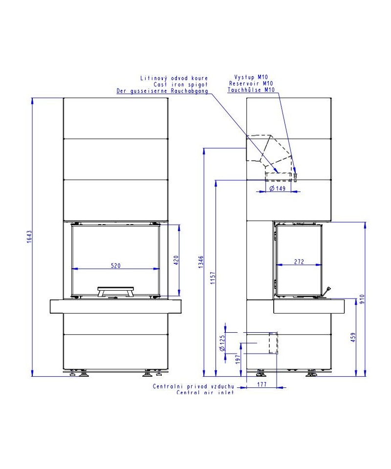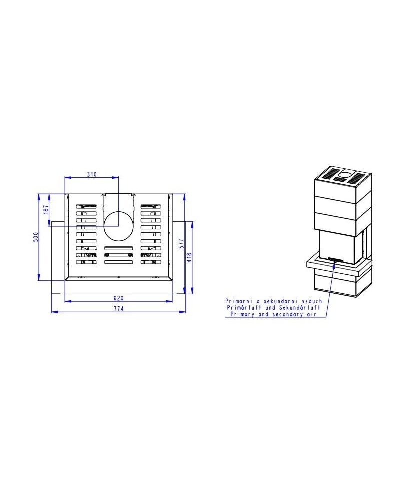 • dvojité odtienenie zadného plášťa umožňujúci postaviť krb priamo na stenu