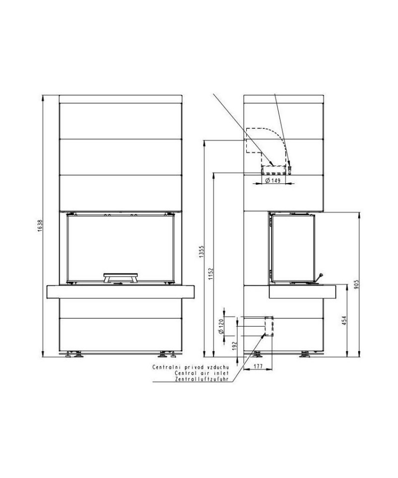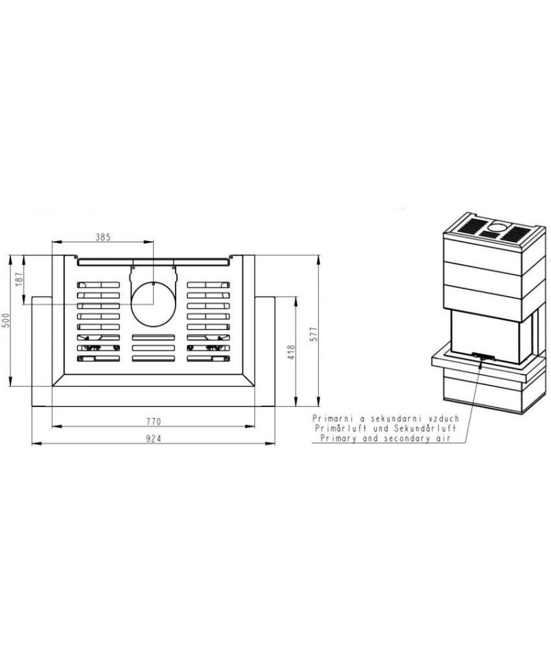 • dvojité odtienenie zadného plášťa umožňujúci postaviť krb priamo na stenu