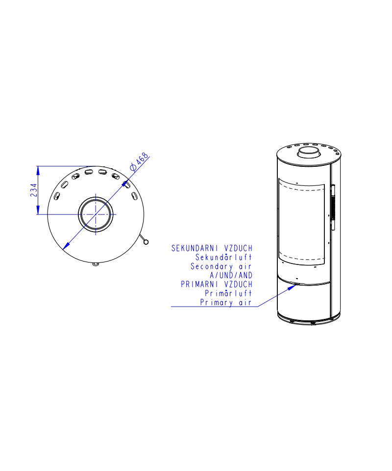 • regulácia primárneho a sekundárneho vzduchu jedným ovládacím prvkom