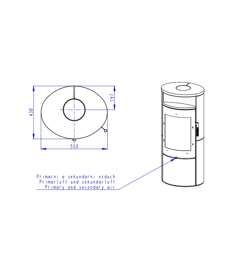 • regulácia primárneho a sekundárneho vzduchu jedným ovládacím prvkom