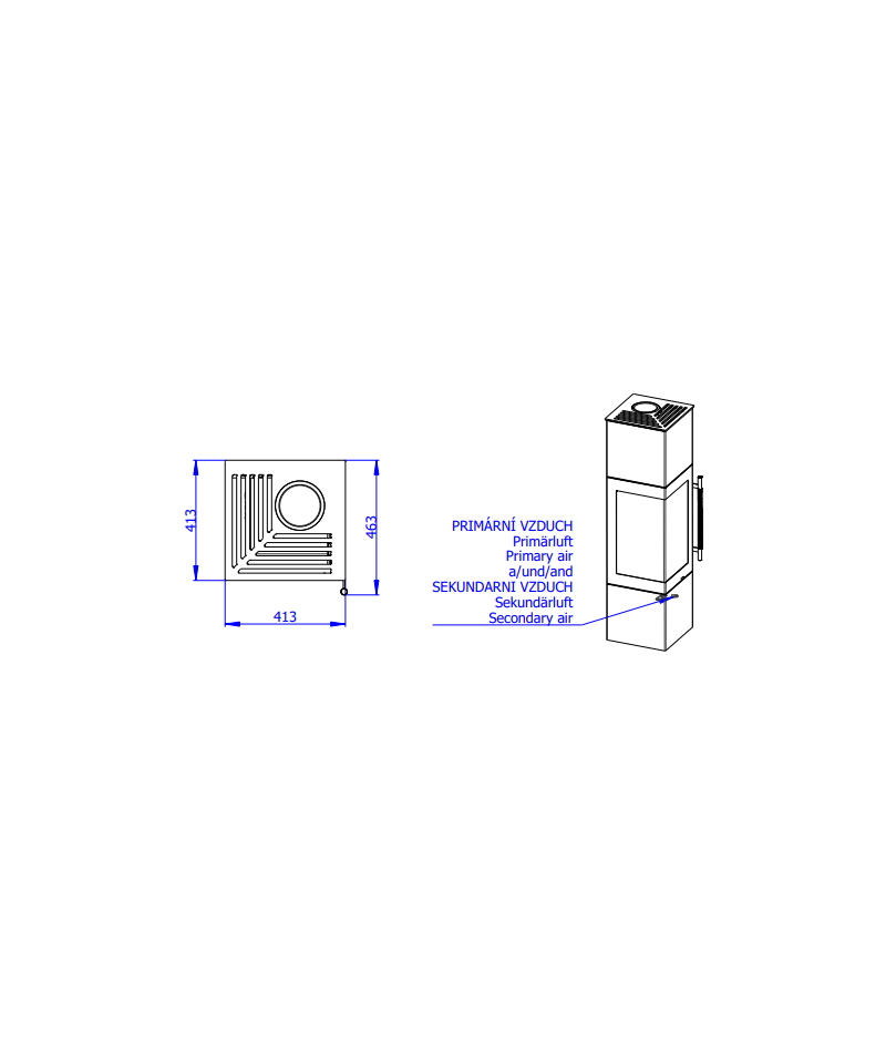 • regulácia primárneho a sekundárneho vzduchu jedným ovládacím prvkom