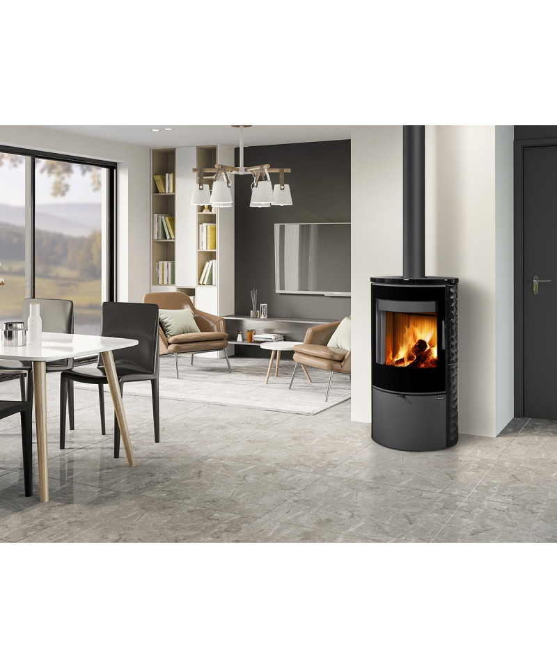 Zaoblený tvar krbových kachlí SONE G spoločne s dizajnovým sklom poskytujú príjemný pohľad na oheň, ktorý nikdy nezevšední.