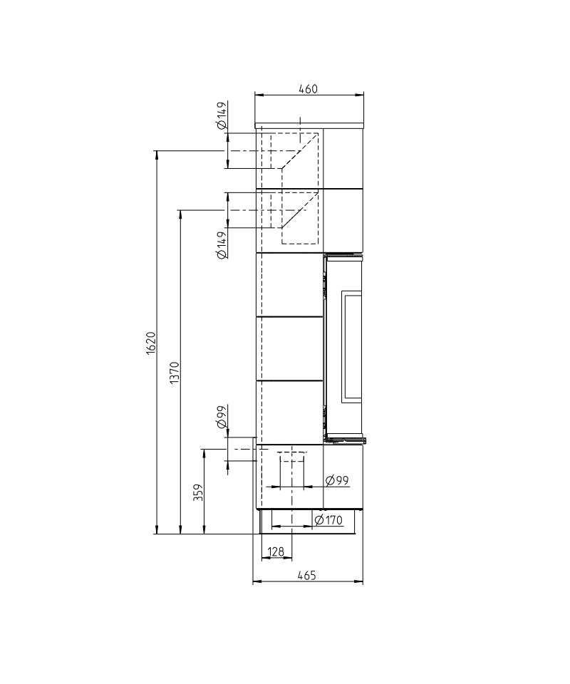 Kachle majú pripravené otvor na prívod vzduchu a dajú sa napojiť na centrálny prívod vzduchu (100 mm). Dá sa kúriť nielen drevom, ale aj drevenými alebo hnedouhlými briketmi. Ohnisko je vyložené vermikulitom, rošt je liatinový. Prívody primárneho a sekundárneho vzduchu sú regulovateľné.