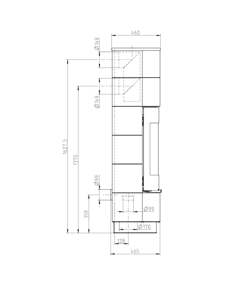 Kachle majú pripravené otvor na prívod vzduchu a dajú sa napojiť na centrálny prívod vzduchu (100 mm). Dá sa kúriť nielen drevom, ale aj drevenými alebo hnedouhlými briketmi. Ohnisko je vyložené vermikulitom, rošt je liatinový. Prívody primárneho a sekundárneho vzduchu sú regulovateľné.